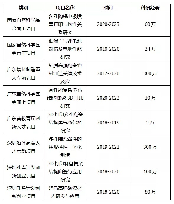 深圳大學(xué)增材制造研究所在從事3D打印研究近4年左右時(shí)間內(nèi),已獲得國(guó)家自然科學(xué)基金面上項(xiàng)目、青年項(xiàng)目、廣東省自然科學(xué)基金面上項(xiàng)目、廣東省重大專項(xiàng)、廣東省教育廳青年創(chuàng)新人才項(xiàng)目、深圳市科創(chuàng)委項(xiàng)目等各級(jí)科研項(xiàng)目經(jīng)費(fèi)支持近20項(xiàng),累計(jì)科研經(jīng)費(fèi)近1000萬(wàn)元。近年來(lái)發(fā)表SCI論文近40篇,其中TOP期刊20余篇。部分項(xiàng)目如下: