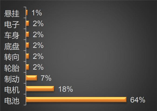 有數(shù)據(jù)顯示,消費者對新能源汽車投訴的質(zhì)量問題主要集中在鋰電池,占比超過一半,高達64%。