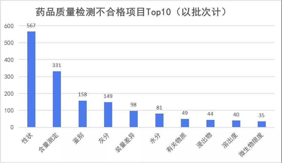 3、藥品質(zhì)量檢測(cè)不合格項(xiàng)目Top10