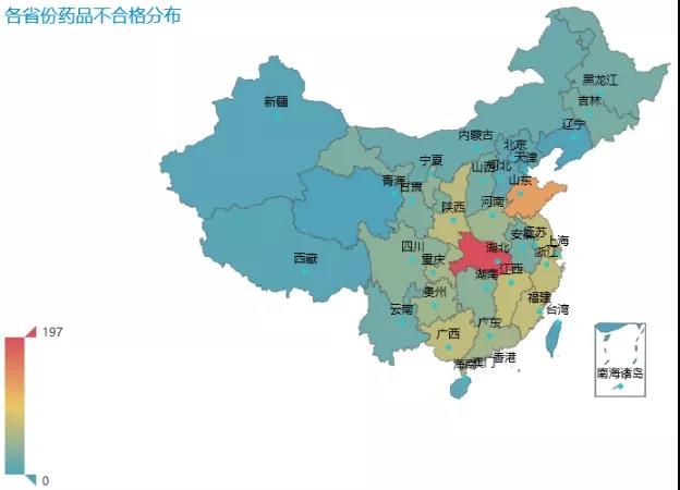 4、藥品質(zhì)量不合格抽檢省份分布