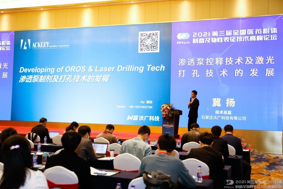 石家莊沃廣科技有限公司技術(shù)總監(jiān)冀揚(yáng)做《滲透泵控釋技術(shù)及激光打孔技術(shù)的發(fā)展》報(bào)告