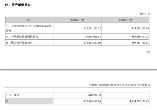 2020年度,寧德時(shí)代的資產(chǎn)減值損失約-8.27億元,而2019年度約為-14.34億元,同比減少了約6億元。
