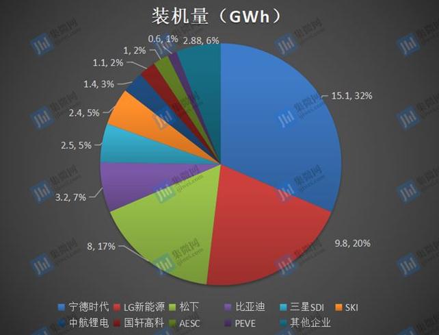 2021年一季度全球動力電池裝機量市場份額(來源:集微網(wǎng)整理)