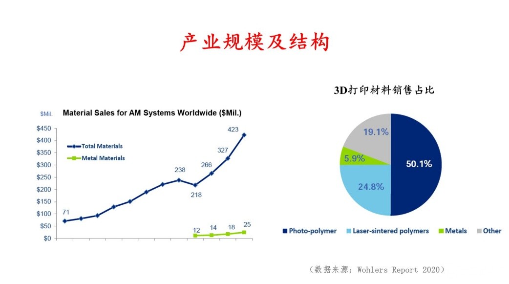 首先,來自北京科技大學(xué)的曲選輝教授給大家?guī)砹祟}為《金屬近球形粉末低成本制造與高效3D打印成形新技術(shù)》的報告。曲教授對3D打印技術(shù)進行了介紹,并對當前的產(chǎn)業(yè)規(guī)模及結(jié)構(gòu)進行了介紹。目前3D打印產(chǎn)業(yè)正在飛速發(fā)展,而金屬3D打印發(fā)展相對緩慢,原因在粉末原料成本、制造效率、熱應(yīng)力和形變及控形控性一體化等方面仍需進一步研究。