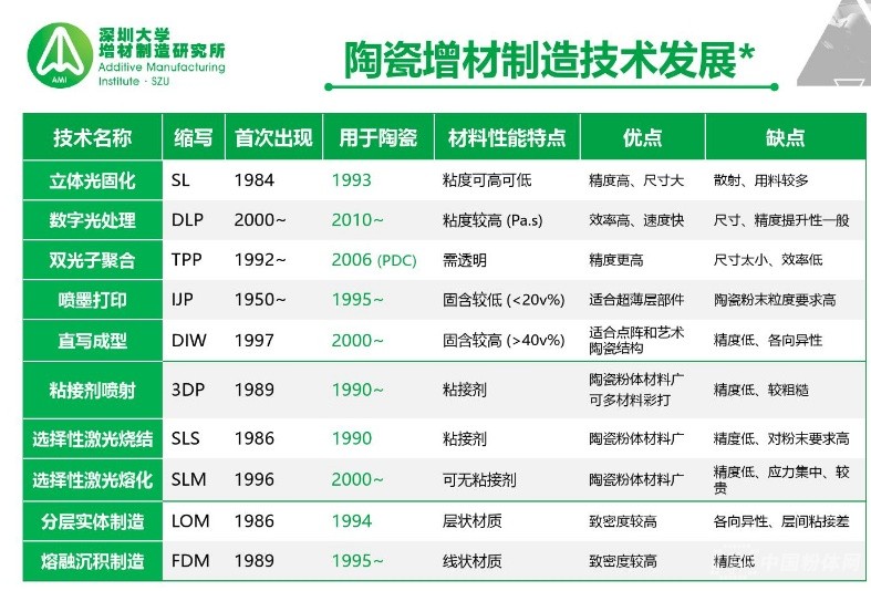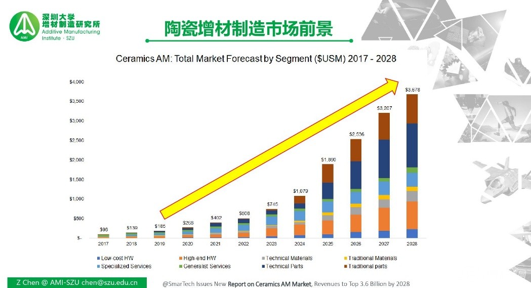 來自深圳大學(xué)增材制造研究所的陳張偉教授給大家?guī)砹祟}為《陶瓷增材制造技術(shù)與應(yīng)用》的報告。首先陳教授對增材制造的發(fā)展歷程、制造流程、市場前景進行了詳細的介紹,并指出各種打印技術(shù)的優(yōu)缺點。