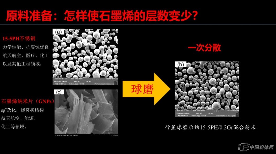 首先,張效迅副教授拋出了一個問題,怎樣使石墨烯的層數(shù)變少?張效迅副教授指出,通過球磨可使石墨烯在金屬中第一次分散。然而,這種分散還遠遠不夠,需要再次分散。