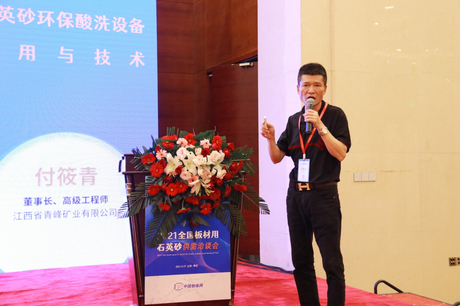 江西青峰礦業(yè)有限公司付筱青董事長作《石英砂環(huán)保酸洗設(shè)備應(yīng)用與技術(shù)》報告