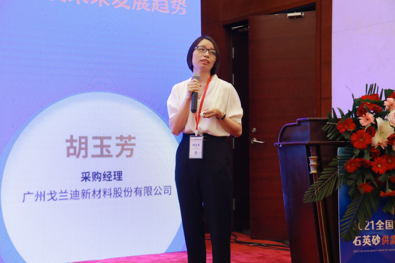 廣州戈蘭迪新材料股份有限公司胡玉芳經(jīng)理作《石英砂粉對板材的作用及未來發(fā)展趨勢》報告
