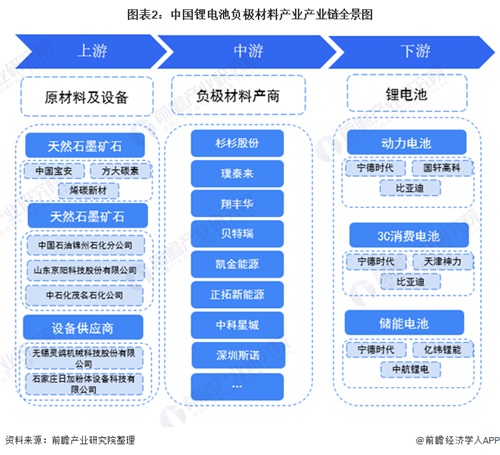 圖表2:中國鋰電池負(fù)極材料產(chǎn)業(yè)產(chǎn)業(yè)鏈全景圖
