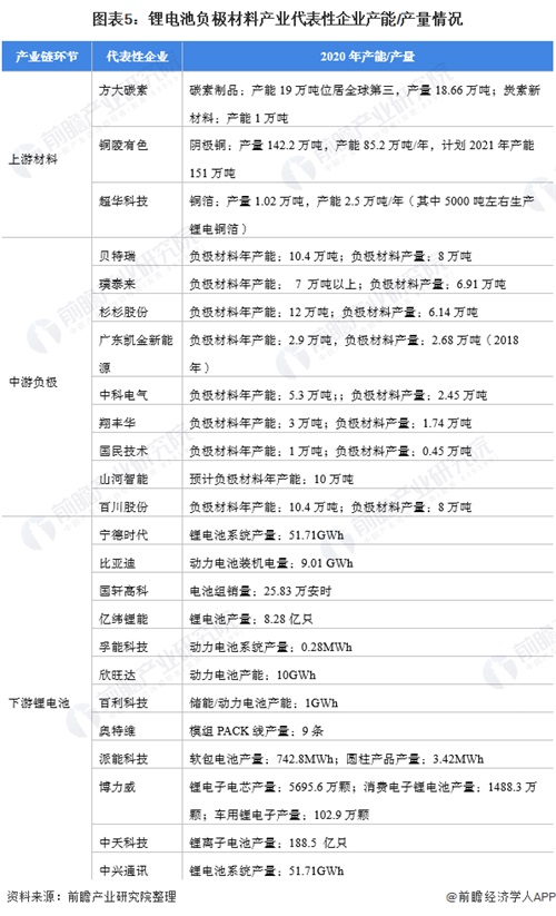 鋰電池負(fù)極材料產(chǎn)業(yè)代表性企業(yè)產(chǎn)能/產(chǎn)量情況
