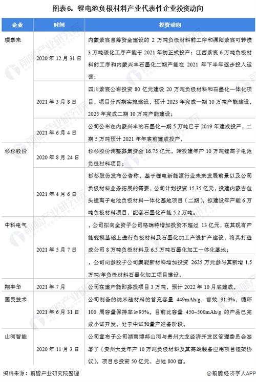 鋰電池負(fù)極材料產(chǎn)業(yè)代表性企業(yè)最新投資動向