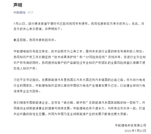 此刻,“弟”中航鋰電也坐不住了,立馬回應(yīng)