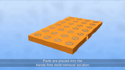 中國粉體網(wǎng)訊 以色列Tritone公司發(fā)明了一種新的3D打印工藝稱為Moldjet。Moldjet技術(shù)具有兩個典型的步驟:首先,噴墨打印頭噴射蠟狀聚合物實(shí)現(xiàn)模具層成型,之后將金屬膏填充入模具層,并借助刮板刮平,這兩個步驟完成后采用光照實(shí)現(xiàn)蓋層硬化。兩個步驟多層重復(fù)后實(shí)現(xiàn)模具和零件的一同成型。在該打印過程中,設(shè)備內(nèi)部的高分辨率相機(jī)會監(jiān)控每一層的打印過程,如果判斷有缺陷,會針對該層再執(zhí)行一次程序。打印完的部分采用化學(xué)的方式脫模,由于之前的光照加熱,零件本身已經(jīng)有了一定強(qiáng)度,容易實(shí)現(xiàn)一次脫模。