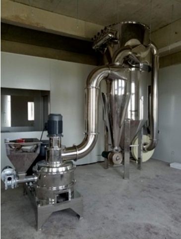 由定量喂料系統(tǒng)把物料輸送到粉碎腔內(nèi),物料進入粉碎腔內(nèi)進行分散,分散后的物料在高速旋轉(zhuǎn)的動件與定件之間碰撞,又同時受到高壓氣流的沖擊與剪切使物料瞬間變細。