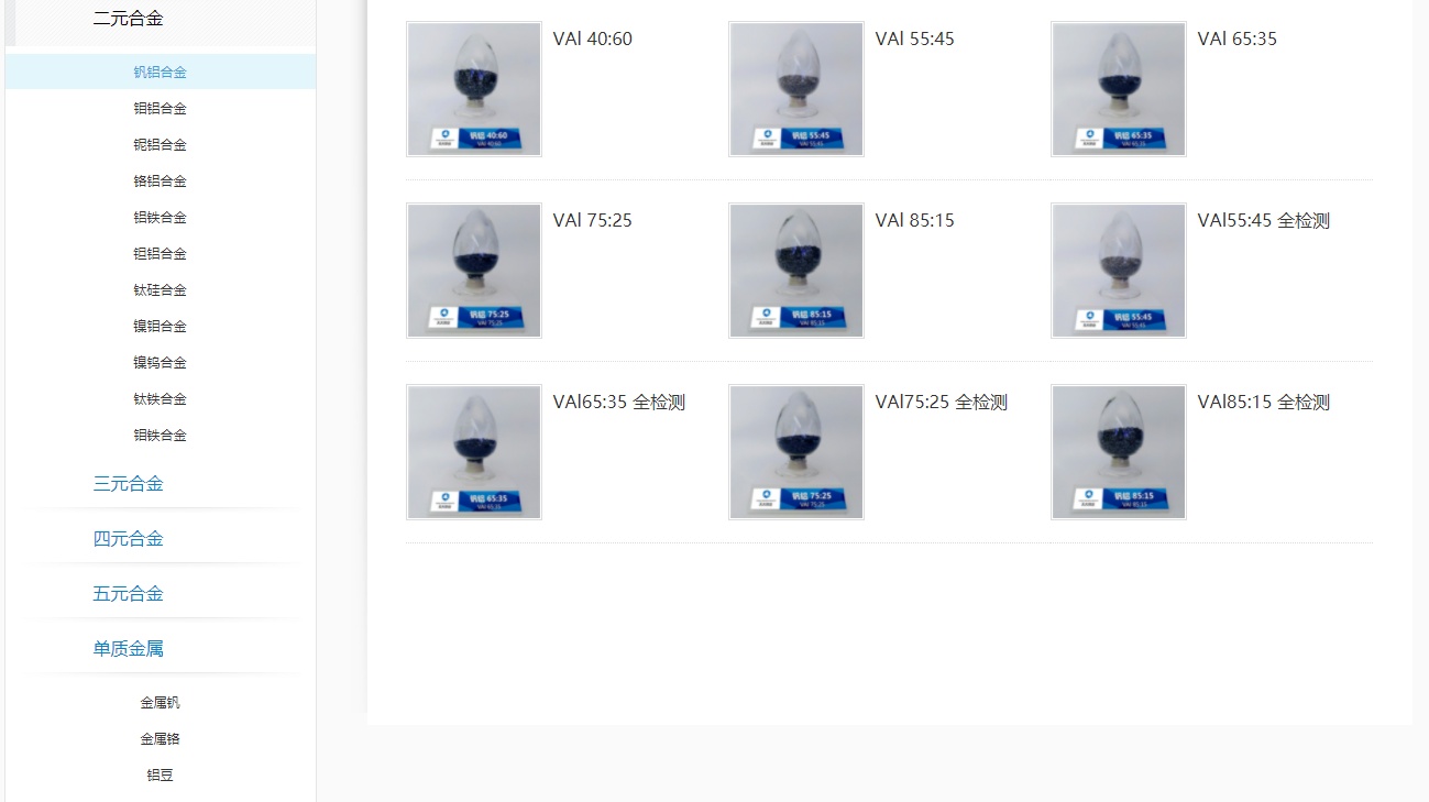 公司專注于研發(fā)生產(chǎn)合金產(chǎn)品(鋁釩合金、鋁鉬合金、釩鐵合金、鋁鈮合金、鋁鉭合金、硅鈦合金、鋁鐵合金、釩鉻合金、鋁鉬釩合金、鋁鉻合金、鋁鈮鉭合金、釩鋁鐵合金、鋁釩錫銅鐵合金、鎳硼合金、鎳鈮合金、鎳鎢合金、鎳鉬合金)及金屬材料(金屬釩、金屬硅、電解錳、金屬鉻、鋁豆、鋁粒)。廣泛應(yīng)用于航天工程、戰(zhàn)機(jī)、大飛機(jī)、生物醫(yī)療等重大高科技項目。隨著鈦合金以及高溫合金應(yīng)用領(lǐng)域的拓展和延伸,對關(guān)鍵中間合金材料的品質(zhì)提出了更高的要求,為滿足客戶需求該公司從德國引進(jìn)了國際先進(jìn)的中間合金生產(chǎn)線,并迅速形成合金產(chǎn)品的規(guī);彤a(chǎn)業(yè)化、并實(shí)現(xiàn)全過程自動化控制的流水線生產(chǎn)方式,產(chǎn)品質(zhì)量在國際同類產(chǎn)品中處于領(lǐng)先水平,已發(fā)展成為中國航空航天級中間合金制造領(lǐng)軍者,并可提供量身定制的中間合金及應(yīng)用領(lǐng)域全方位的技術(shù)支持。