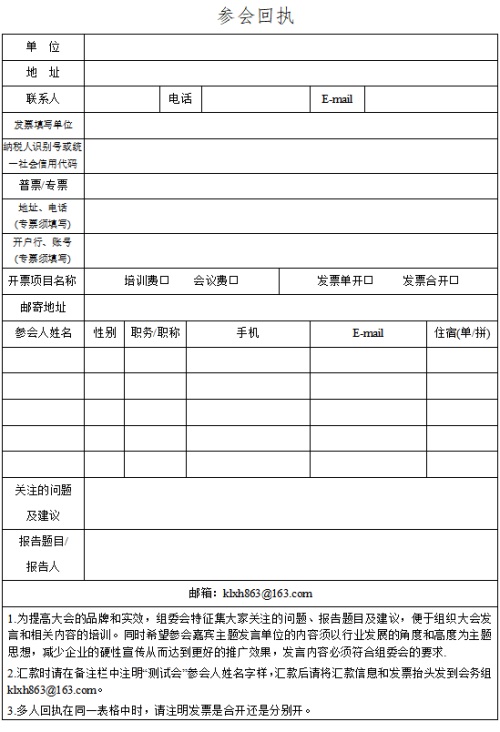 匯款后,請將匯款信息和發(fā)票抬頭發(fā)到會務(wù)組klxh863@163.com。