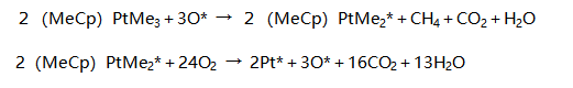 在ALD生長中,貴金屬一般是利用貴金屬有機化合物和氧氣進行反應(yīng)生成。因為與形成化合物相比,以鉑為代表的貴金屬更容易生成穩(wěn)定的金屬單質(zhì)。氧氣作為其中一個反應(yīng)物將增強這種趨勢,金屬前驅(qū)體的有機配體被氧化,反應(yīng)過程中均有燃燒產(chǎn)物CO2 和H2O放出,使ALD生長貴金屬的反應(yīng)就像是氧氣燃燒掉了金屬的烴基,故命名為燃燒反應(yīng)。