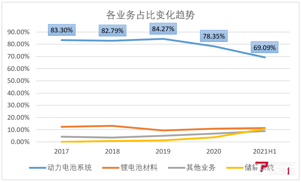 動力電池業(yè)務(wù)營收占比下降,儲能業(yè)務(wù)增長表現(xiàn)搶眼