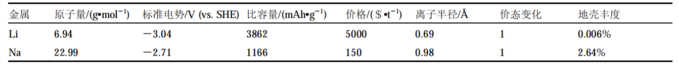 表1 金屬鈉與金屬鋰基本性質(zhì)對(duì)比