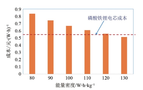 圖1 不同能量密度的鈉離子電池預(yù)估成本圖
