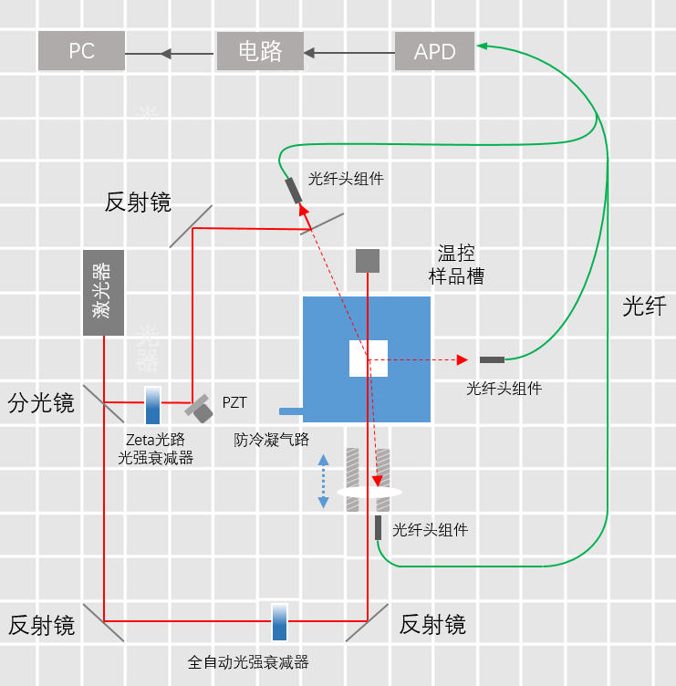 動(dòng)態(tài)光散射技術(shù)是通過測(cè)量隨機(jī)漲落的散射光信號(hào)得到散射光強(qiáng)的自相關(guān)函數(shù),再由光強(qiáng)自相關(guān)函數(shù)反演獲得顆粒的粒徑,它能夠有效、簡(jiǎn)便、快捷地測(cè)量顆粒的粒度分布。目前,動(dòng)態(tài)光散射技術(shù)因其操作簡(jiǎn)單、實(shí)時(shí)性強(qiáng)、測(cè)量時(shí)間少等優(yōu)點(diǎn),被廣泛應(yīng)用于科學(xué)研究和工業(yè)生產(chǎn)中。