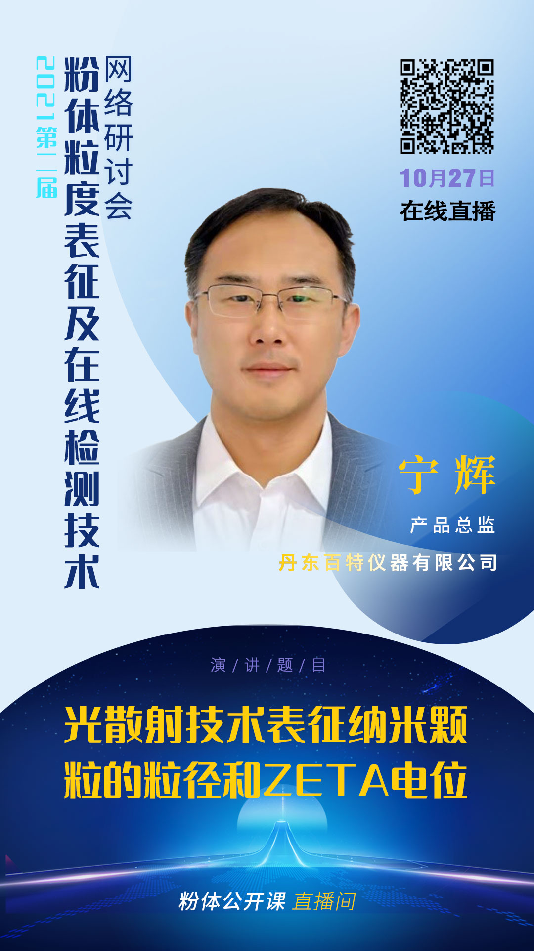 2021年10月27日,中國粉體網(wǎng)旗下粉體公開課平臺(tái)邀請(qǐng)到丹東百特儀器有限公司的產(chǎn)品總監(jiān)寧輝先生作《光散射技術(shù)表征納米顆粒的粒徑和Zeta電位》報(bào)告。在本報(bào)告中,寧總將詳細(xì)介紹BeNanoZeta納米粒度電位儀,這種儀器采用丹東百特公司的動(dòng)態(tài)光散射技術(shù)和電泳光散射技術(shù),能夠表征典型的納米顆粒的粒徑和Zeta電位,提供不同環(huán)境下顆粒的穩(wěn)定性信息。