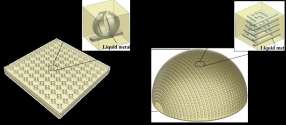 該研究將3D打印的靈活性與液態(tài)金屬的易流動(dòng)、易填充性相結(jié)合,開(kāi)辟了一類復(fù)雜微結(jié)構(gòu)制造新方法,為結(jié)構(gòu)-功能一體化柔性電子、軟體機(jī)器人、天線等富含多材料、跨尺度結(jié)構(gòu)的制造奠定了基礎(chǔ),也為拓展超材料應(yīng)用范圍(如3D光學(xué)/電磁隱身衣、智能蒙皮、超透鏡等)提供了新的解決方案。