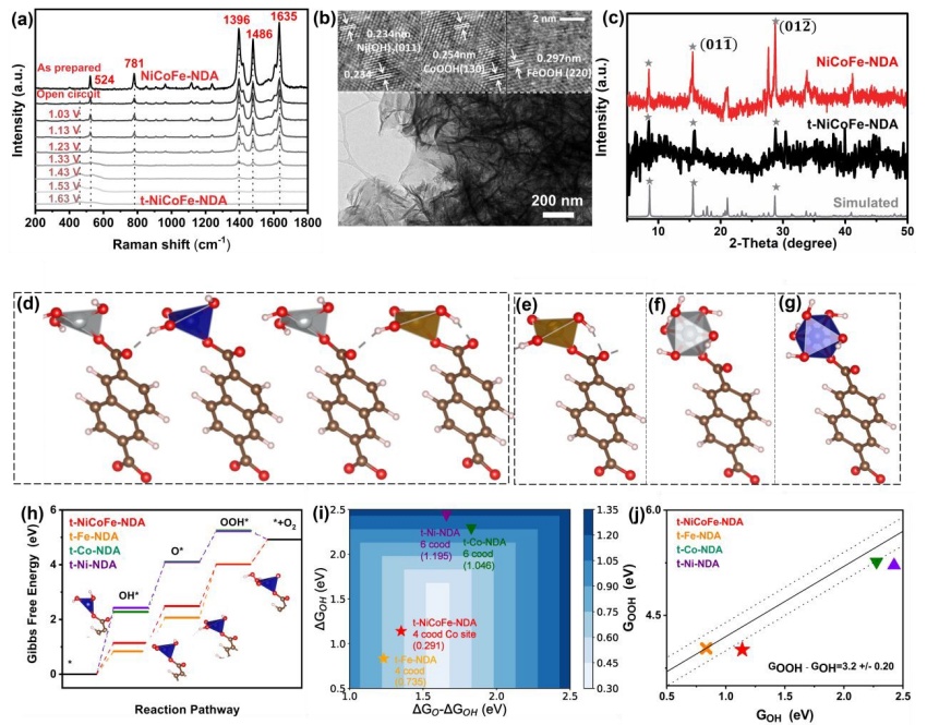 原位光譜學(xué)結(jié)合理論計算闡述NiCoFe-NDA的水氧化構(gòu)效關(guān)系以及水氧化機(jī)制研究