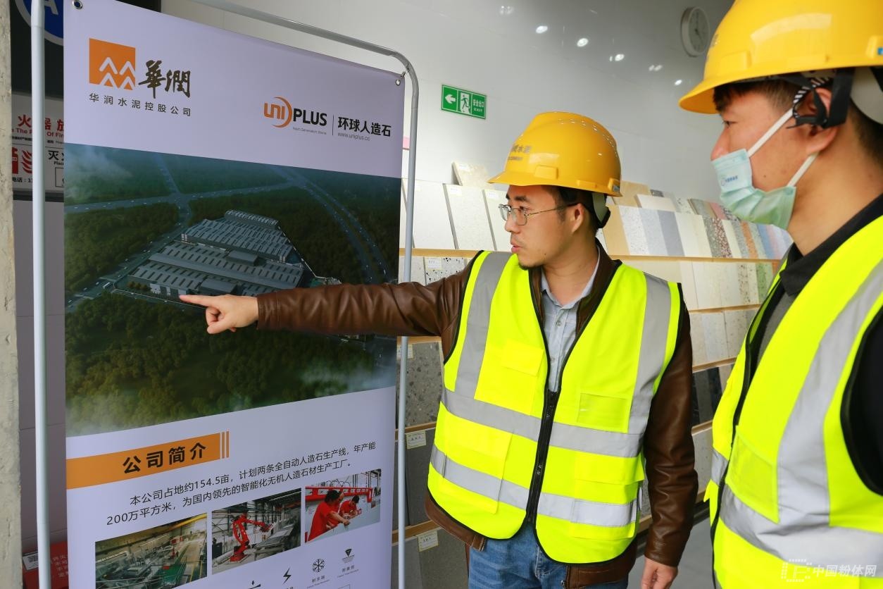 (圖:環(huán)球石材郭總為中國粉體網(wǎng)宋總講解公司發(fā)展概況)