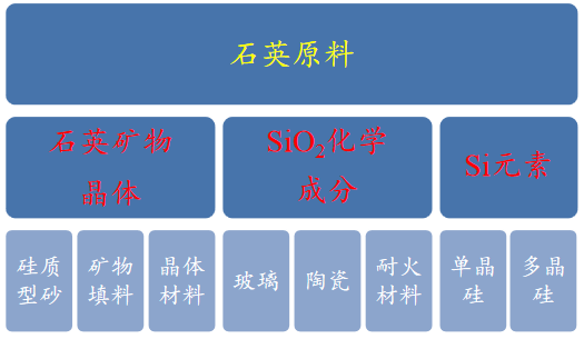 石英礦物原料工業(yè)應用的三種形式與應用實例示意圖