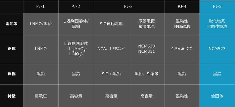 PJ-3高容量負極(Si系材料和與其組合厚膜正極)電池