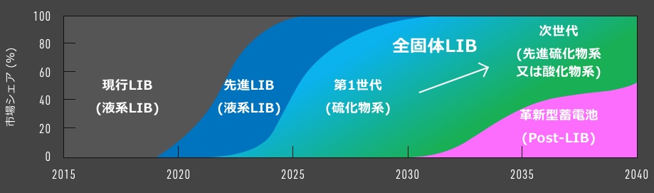 下一代全固態(tài)LIB將應用高鋰離子導電硫化物固體電解質或化學穩(wěn)定性高的氧化物固體電解質,預計從2030年初開始,該電解質將成為汽車電池市場的主流。為此,LIBTEC將與科研機構合作,通過提高材料容量來實現(xiàn)電池的更高能量密度。