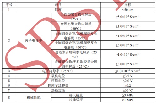 表2 固態(tài)鋰電池用聚合物及復(fù)合固態(tài)電解質(zhì)的技術(shù)參數(shù)要求