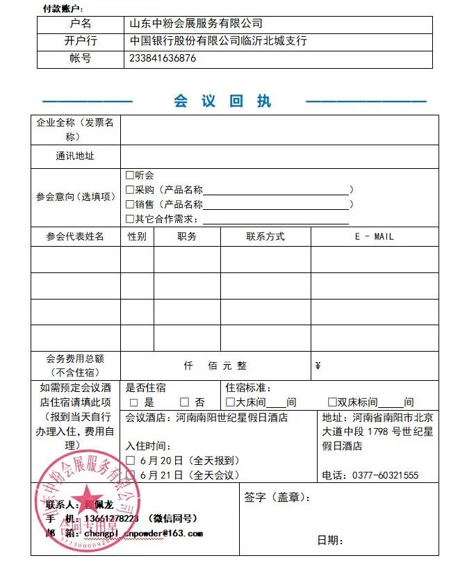 要求:參會(huì)報(bào)名須需填寫參會(huì)回執(zhí)單等資料發(fā)微信或郵件回傳。