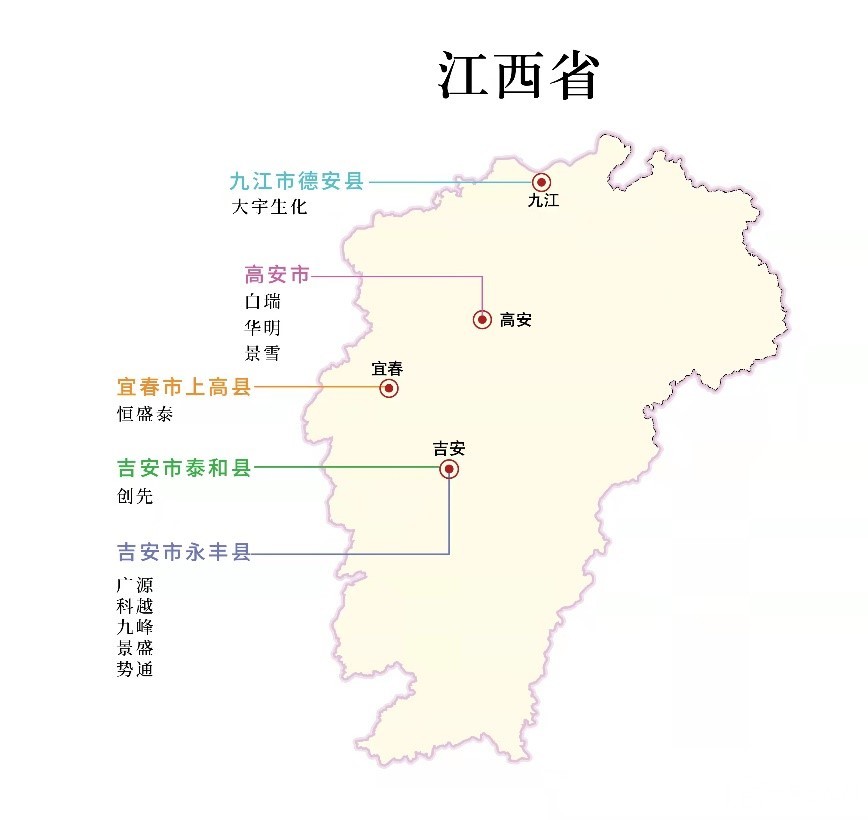 信息來源:各公司官網(wǎng)、萬方數(shù)據(jù)、江西省人民政府等