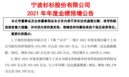 3、杉杉股份2021年凈利同比預(yù)增逾21倍