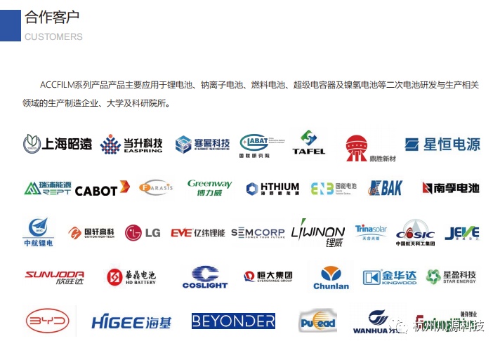 2016年完成核心產(chǎn)品全球首發(fā)后,已服務(wù)近100客戶,2020年實(shí)現(xiàn)為全球市場(chǎng)出貨前十的企業(yè)中其中7家提供產(chǎn)品服務(wù),“ACCFILM”品牌已經(jīng)成為新能源動(dòng)力電池細(xì)分領(lǐng)域的代名詞。