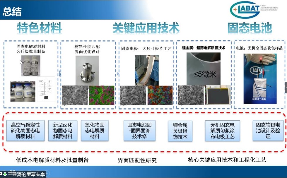 王建濤副總經理介紹了國聯(lián)研究院在開展高空氣穩(wěn)定性硫化物固態(tài)電解質和高離子導無機鹵化物類固態(tài)電解質材料研發(fā)及其應用技術方面的進展情況。