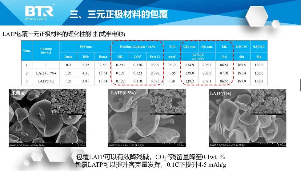 楊成林副主任介紹了磷酸鈦鋁鋰固態(tài)電解質產品,并講述了LATP包覆三元正極材料的研究進展。