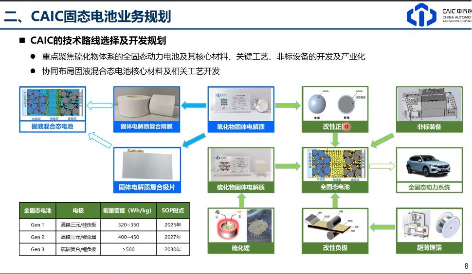 劉張波博士介紹了中汽創(chuàng)智在固態(tài)電池領域的業(yè)務規(guī)劃,及在氧化物固體電解質和硫化物固體電解質方面的開發(fā)和應用進展。