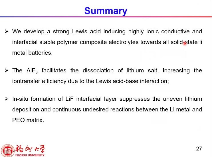 湯育欣教授介紹了課題組開發(fā)的一種面向全固態(tài)鋰金屬電池的固體聚合物電解質。
