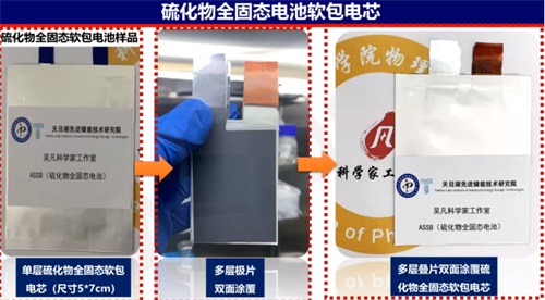 吳凡教授:對(duì)于硫化物全固態(tài)電池軟包電芯,現(xiàn)在做了原型樣本電芯,包括單層硫化物全固態(tài)軟包電芯和多層疊片硫化物全固態(tài)軟包電芯。我們也聯(lián)合了寧德時(shí)代、寶能、天目先導(dǎo)、北京衛(wèi)藍(lán)、天目湖先進(jìn)儲(chǔ)能技術(shù)研究院以及南京大學(xué)、蘇州大學(xué)共同承擔(dān)了江蘇省重點(diǎn)研發(fā)項(xiàng)目,推進(jìn)全固態(tài)電芯的研發(fā)攻關(guān)和小批量試制。預(yù)計(jì)硫化物全固態(tài)電芯更好的應(yīng)用場(chǎng)景將會(huì)是在軍工、航空航天、特種裝備、專(zhuān)用電動(dòng)工具等這些領(lǐng)域。隨著全固態(tài)電池的產(chǎn)業(yè)鏈發(fā)展更加完備,從業(yè)人數(shù)增加,成本降低,以后也會(huì)逐漸向動(dòng)力電池市場(chǎng)滲透。