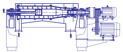 當(dāng)尾泥懸浮液進(jìn)入離心機(jī)轉(zhuǎn)鼓腔后,被高速旋轉(zhuǎn)的轉(zhuǎn)鼓 帶動一起高速旋轉(zhuǎn),因而懸浮液將受到強(qiáng)大的離心力作用。 懸浮液中的固相顆粒由于比重大,所受離心力也較大,因此 固相貼近于鼓壁,形成料環(huán)層,而液相密度小,所受離心力 亦小,在固環(huán)層內(nèi)側(cè)形成液環(huán)層。由于螺旋刮刀與轉(zhuǎn)鼓的轉(zhuǎn) 速不同(螺旋滯后),因此螺旋刮刀將沉積在轉(zhuǎn)鼓內(nèi)壁的固 相推向轉(zhuǎn)鼓小端渣口排出,而液相則從轉(zhuǎn)鼓大端的溢流口排出。