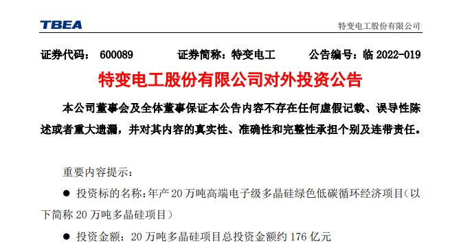 中國粉體網(wǎng)訊 3月15日晚間,特變電工(600089.SH)發(fā)布公告稱,子公司新特能源(01799.HK)和新特能源公司擬在新疆投資建設(shè)20萬噸多晶硅項目。同時,公司宣布新特能源將正式啟動A股上市計劃。