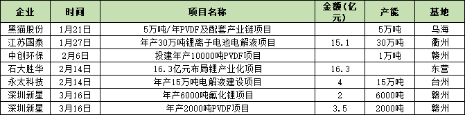 2022年第一季度中國市場電解液、PVDF等投擴產(chǎn)項目