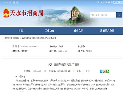 武山石灰?guī)r儲(chǔ)量豐富,主要分布于鴛鴦鎮(zhèn)支鍋峽、吉子坪和馬力鎮(zhèn)的兔兒崖一帶,是縣內(nèi)最有價(jià)值的礦石資源之一,儲(chǔ)量約5億噸。該項(xiàng)目依托豐富的石灰石資源,計(jì)劃建設(shè)10萬(wàn)噸納米碳酸鈣生產(chǎn)線,以納米碳酸鈣為主要原料,建設(shè)硅酮膠生產(chǎn)線;以納米碳酸鈣、PVC樹(shù)脂及其他助劑為原料,建設(shè)汽車底盤涂料生產(chǎn)線;以納米碳酸鈣為原料,建設(shè)納米乳膠漆生產(chǎn)線,配套建設(shè)生產(chǎn)用房、辦公用房、研發(fā)中心、倉(cāng)儲(chǔ)中心及其他配套設(shè)施。
