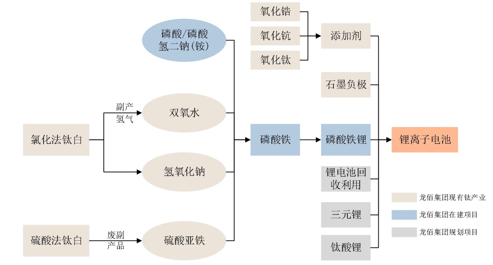 隨著新能源技術(shù)的推廣,鋰電池應(yīng)用市場快速增長,為抓住市場機會,同時提高公司廢副產(chǎn)品的增加值,龍佰集團秉持“大化工、低成本”的發(fā)展思路,利用公司的管理、研發(fā)、技術(shù)及供應(yīng)鏈優(yōu)勢,研發(fā)生產(chǎn)磷酸鐵、磷酸鐵鋰、石墨負(fù)極等電池材料,培育第二增長曲線。