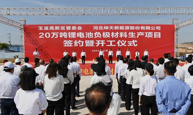 中國粉體網(wǎng)訊 4月25日,玉溪市高新區(qū)管委會(huì)與河北坤天新能源股份有限公司就20萬噸鋰電池負(fù)極材料生產(chǎn)項(xiàng)目進(jìn)行簽約,并舉行項(xiàng)目開工儀式。