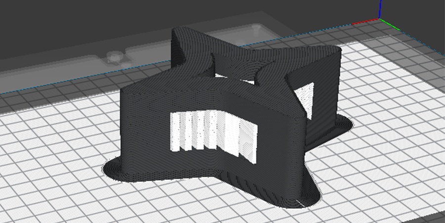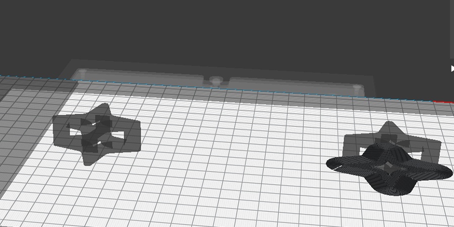 打印模型情況:一個產(chǎn)品模型,在切片軟件上開啟鏡像打印模式,模型自動并排放置和打印。