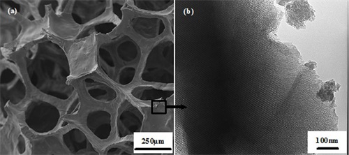 典型的介孔生物活性玻璃支架具有大孔(a)和有序介孔(b)結(jié)構(gòu)